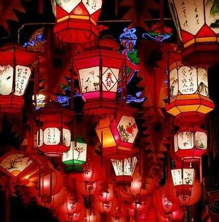 Lanterns hung at Chinese New Year are thought to scare aware the Nian monster and bring good luck.